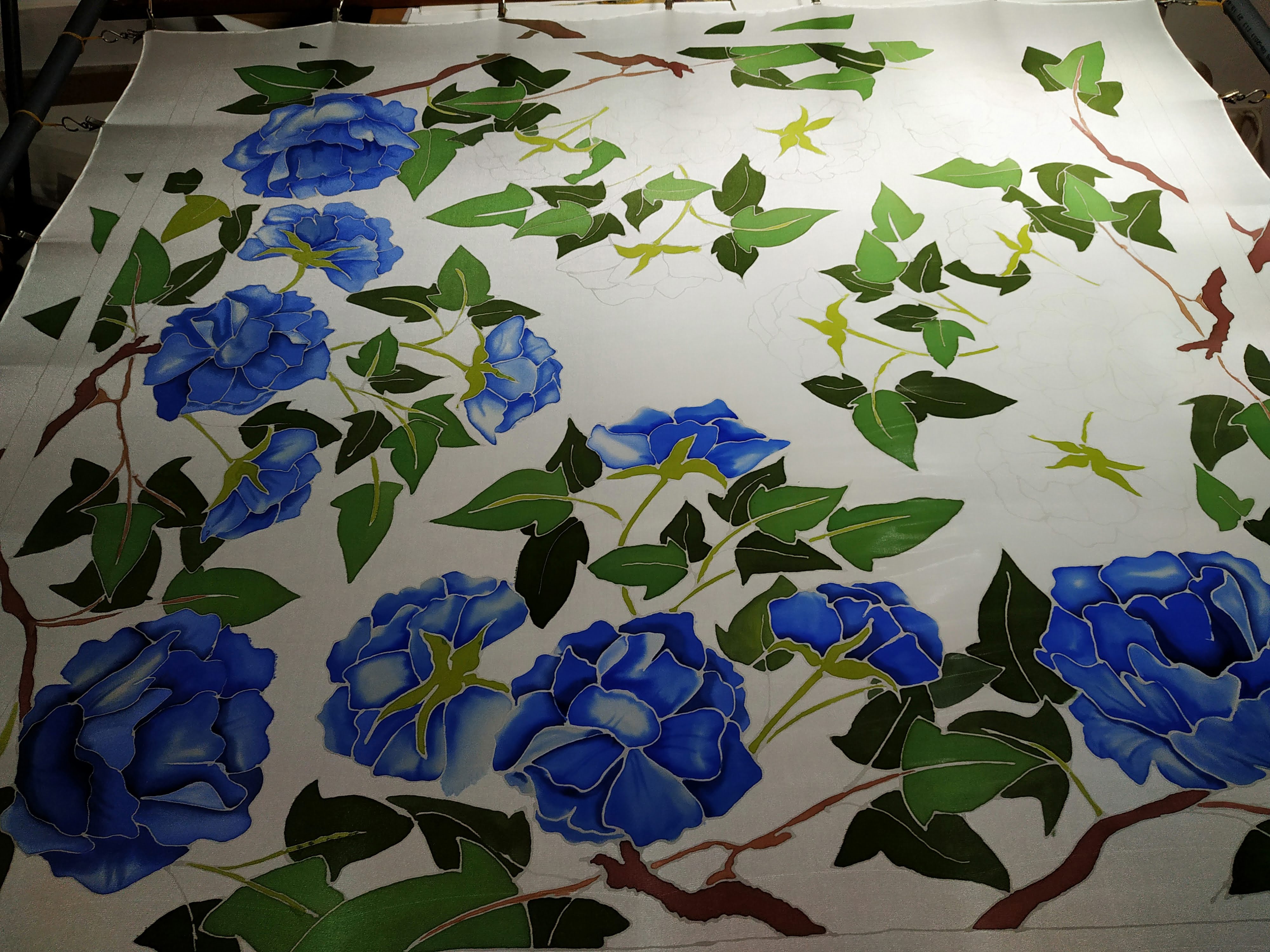Tras terminar con los primeros colores, seguimos con las peonías propiamente dichas. Se aplican tintes ácidos que posteriormente serán fijados por sublimación