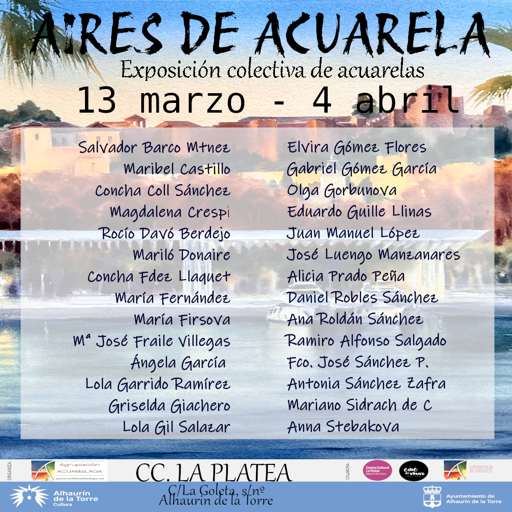 El jueves tocó inauguración, es una colectiva de los Acuarelistas de Málaga, AcuaMálaga, con el sugerente título de AIRES DE ACUARELA